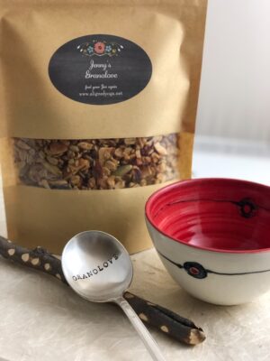 Add a one-of-a-kind, vintage cereal spoon stamped with ‘GRANOLOVE’ to pair with your ganola-loving experience every day.